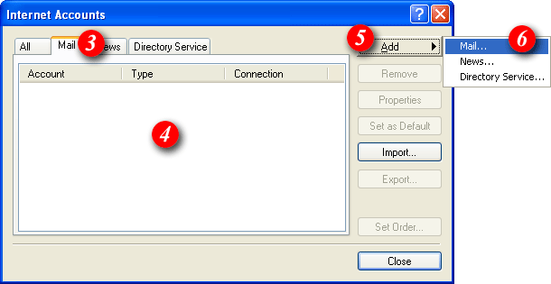 | 4)In the middle of the screen you will see a list of accounts that have already been setup in Outlook Express. | |||||