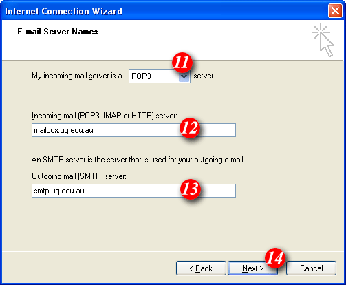 | 11)'My incoming mail server is a .. ' should be set to POP3 (default setting) | |||||